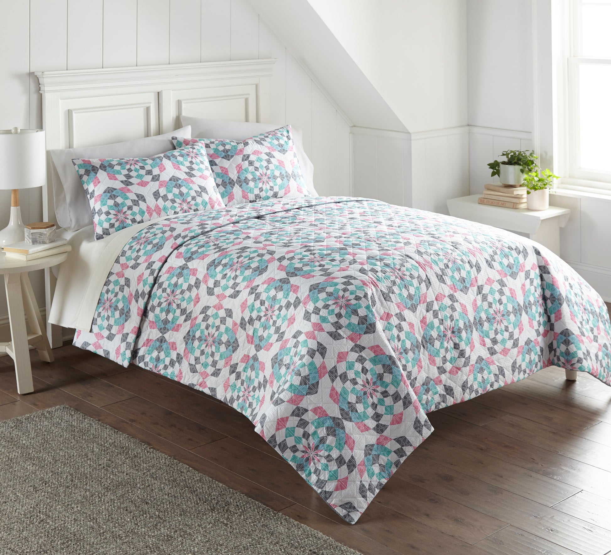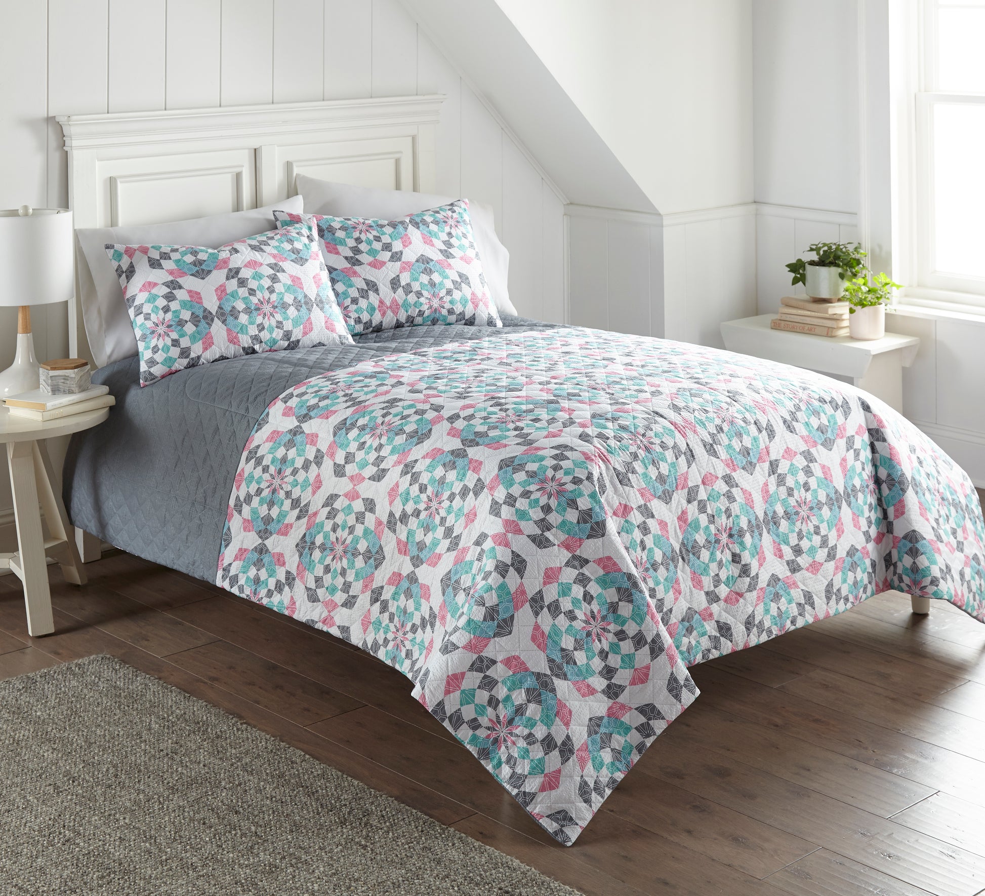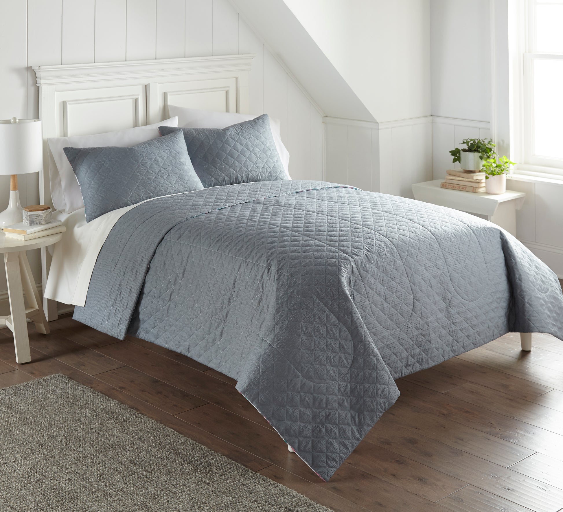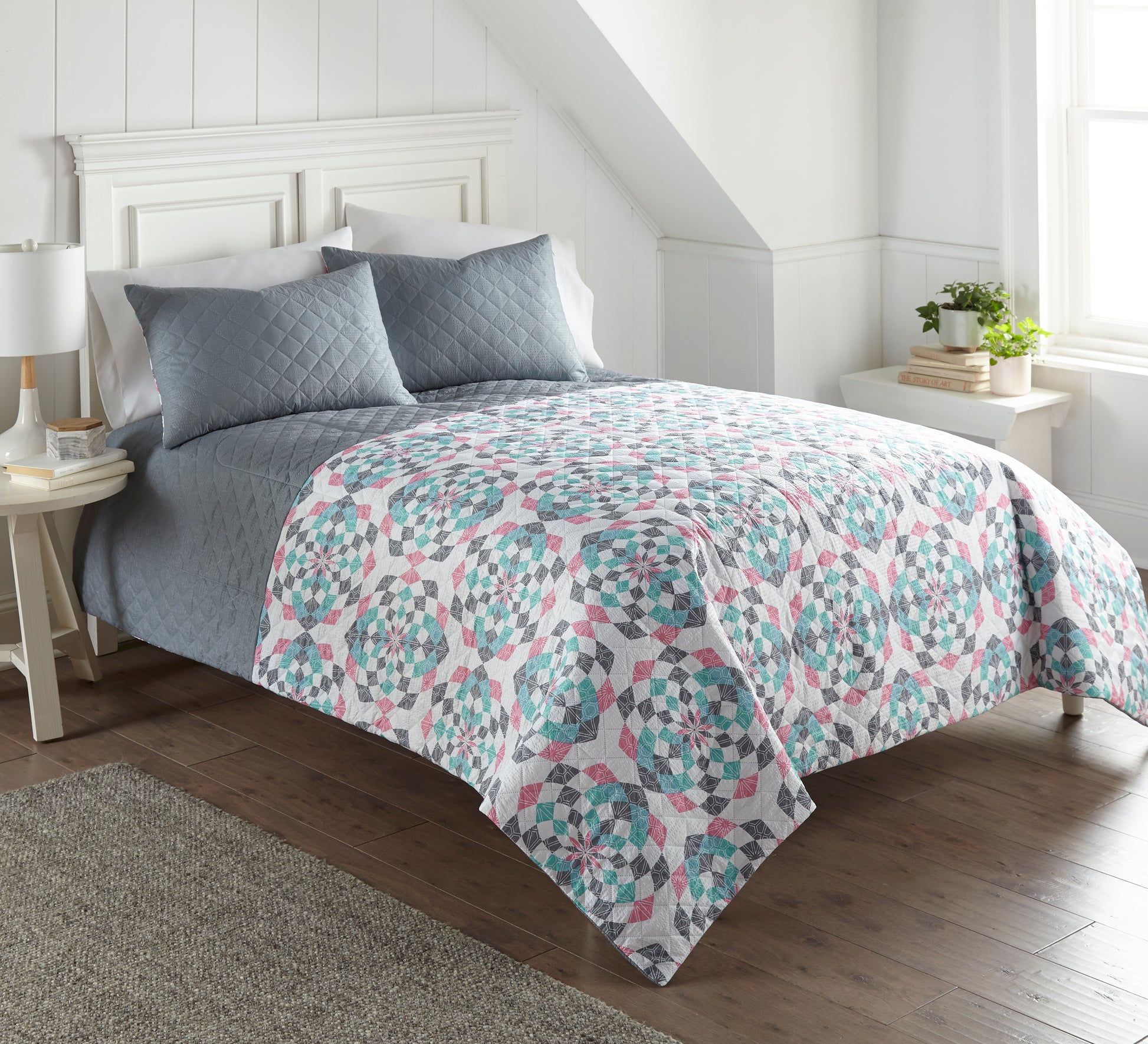 Our 6-in-1 quilt sets are designed for total ease of care, allowing you to switch up your bedroom decor with the seasons without hassle. Featuring modern printed designs and a cool-toned palette, our quilts add a touch of sophistication and beauty to your bedroom.